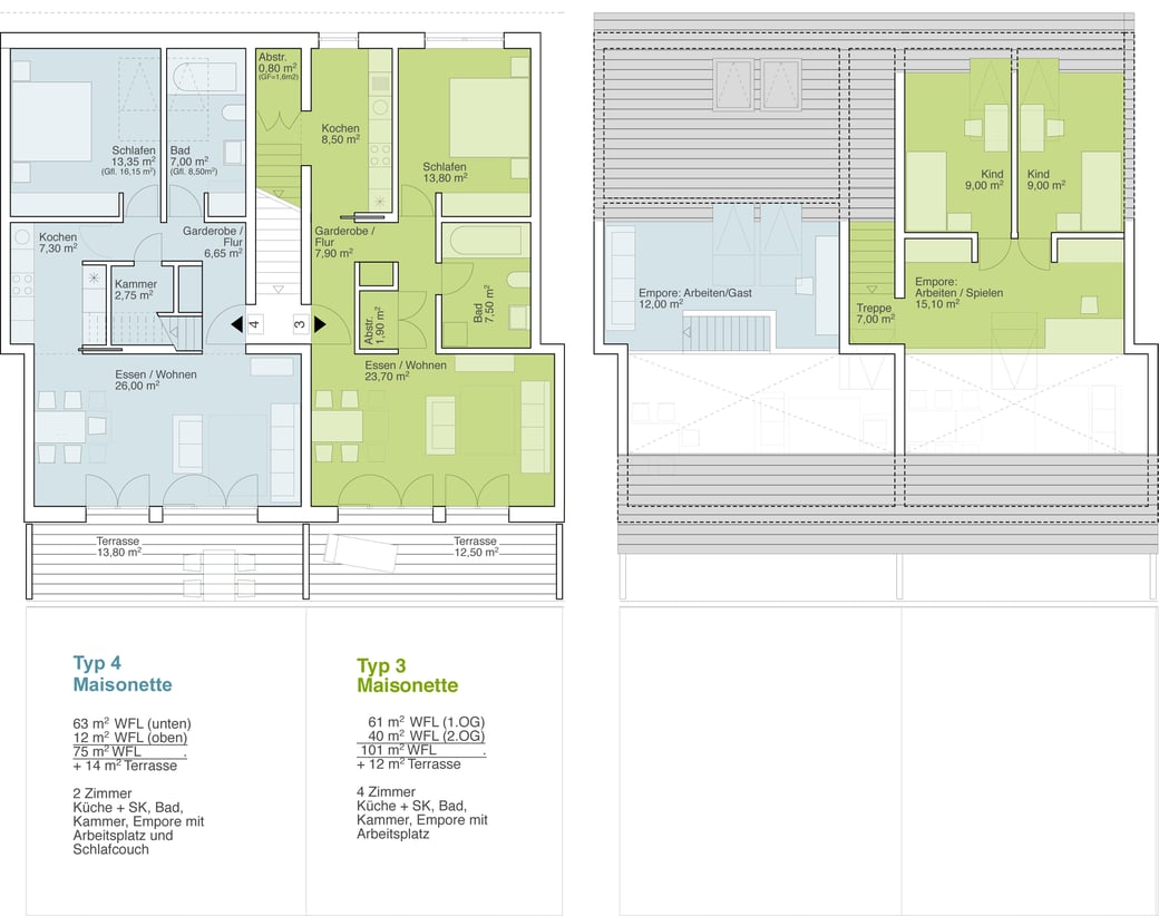 Grundriss 1. Obergeschoss Typ 3 und 4